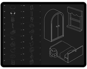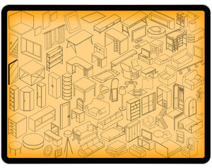 This Procreate stamp set is the ultimate tool for anyone who wants to design interiors, plan layouts, or add room details to their isometric illustrations.