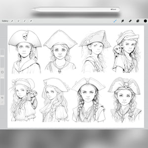 These Procreate pirate brushes are perfect for kids’ art, fantasy scenes, and educational projects. With detailed stamps of pirate boys, girls, and accessories, you can quickly create adventurous illustrations full of charm and excitement. Great for digital painting, concept art, and storytelling projects.