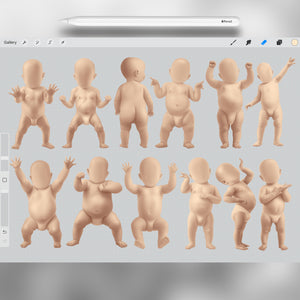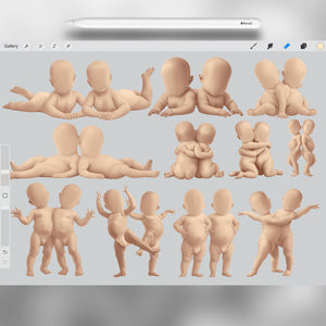 This Procreate stamp set is the ultimate tool for anyone who wants to illustrate adorable infants, practice baby anatomy, or add cute toddler poses to your art.