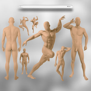 This Procreate stamp set is the ultimate tool for anyone who wants to practice anatomy, design male characters, or create action poses for concept art.