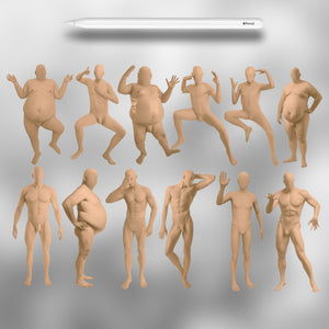 These Procreate male body stamps are perfect for figure drawing, character design, and fashion sketching. With 2D male body pose stamps, you can quickly build muscular or relaxed male figures, adding realism and depth to your digital art. Whether you’re developing characters for comics, practicing anatomy, or designing clothing, these Procreate stamps adapt to your creative needs.
