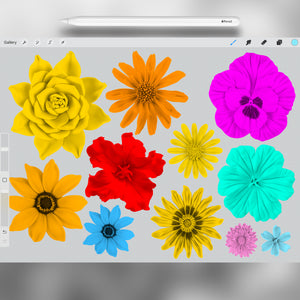 100 Procreate 2D Plasticine Flowers Stamp Brushes