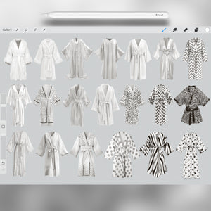 This Procreate stamp set is the ultimate tool for anyone who wants to design loungewear, sketch costumes, or add robes to your illustrations.
