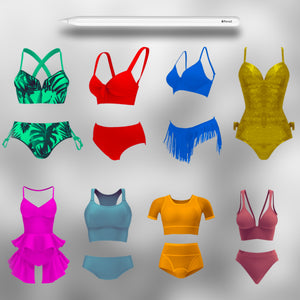 ✔️ Includes a wide variety of swimsuits styles to match any project