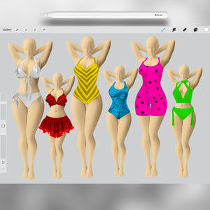 This Procreate stamp set is the ultimate tool for anyone who wants to sketch summer fashion, create beach scenes, or add stylish swimwear to your characters.