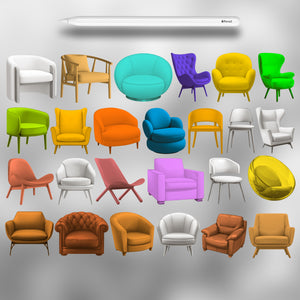 110 Procreate 2D Chairs Stamp Brushes