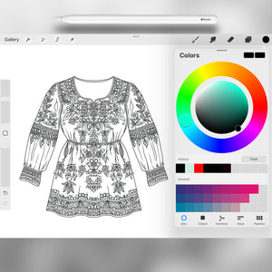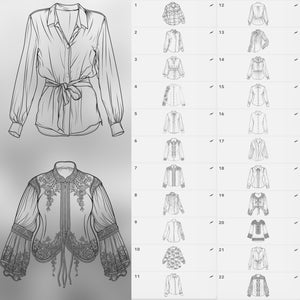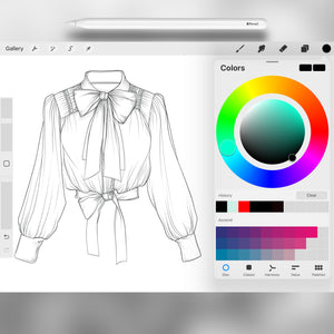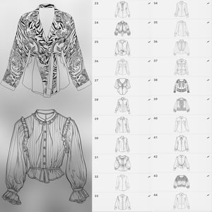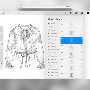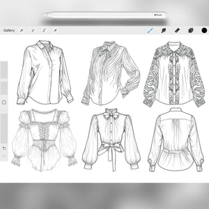 This Procreate stamp set is the ultimate tool for artists who want to design apparel sketches and create characters with stylish blouses.