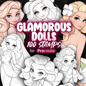 This Procreate stamp set is the ultimate tool for artists who want to draw cute dolls, design big-eyed characters, sketch toy illustrations, or add whimsical doll poses to their digital art.