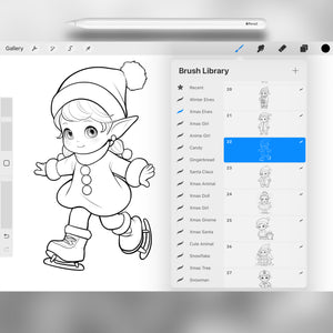 These Procreate Christmas elf stamps are perfect for holiday and winter artwork, fantasy character design, and festive illustration. With charming elf characters and playful poses, you can create cozy Christmas cards, joyful social media art, winter storybook scenes, and magical seasonal patterns that pop on Pinterest and beyond.
