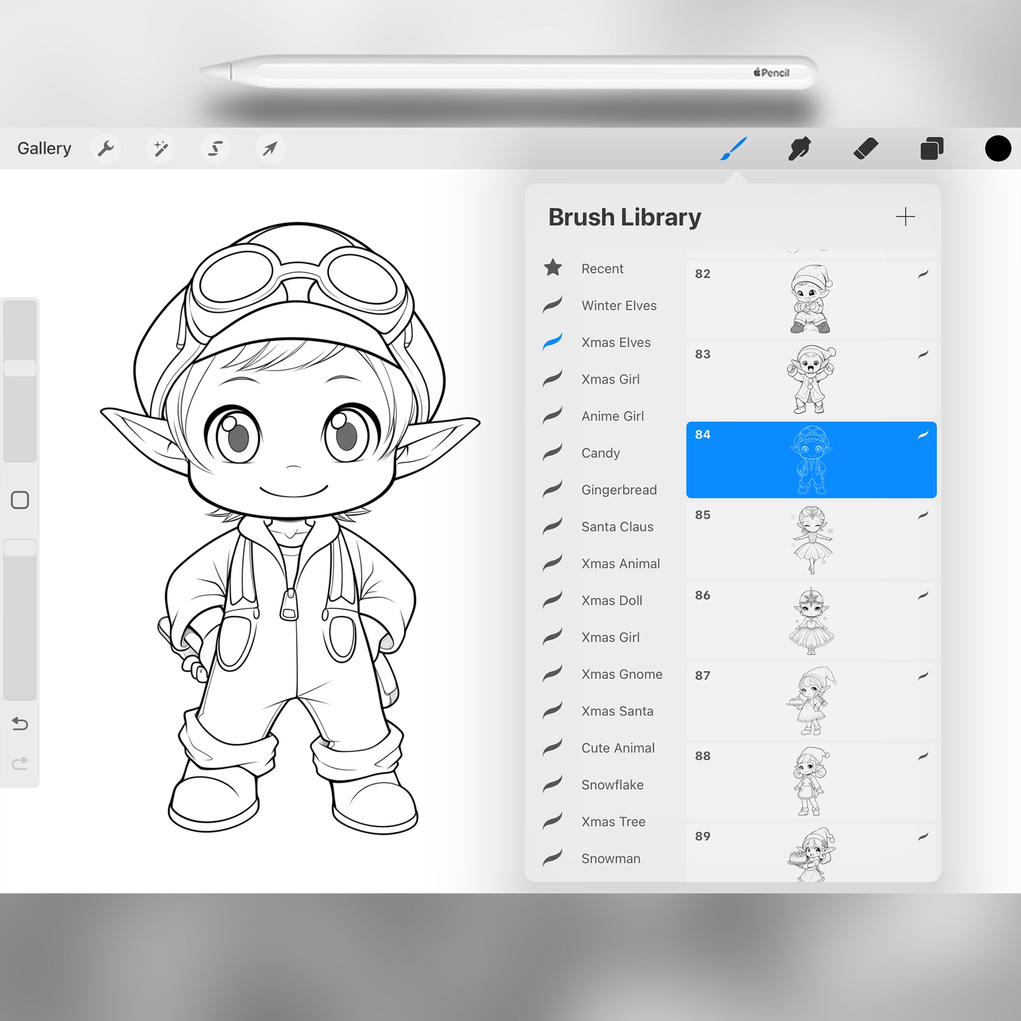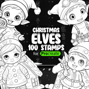 100 Procreate Christmas Elves Stamps