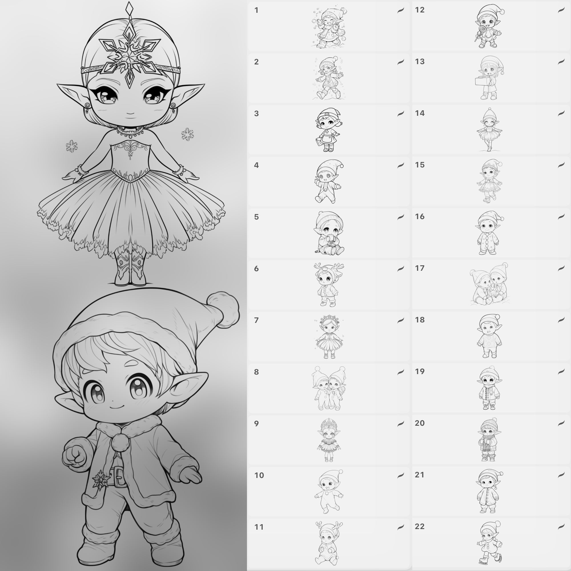 ✔️ Includes a variety of elf poses, outfits, hats, boots, and festive expressions