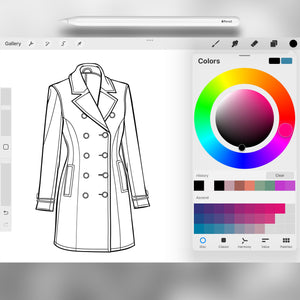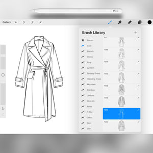 This Procreate stamp set is the ultimate tool for anyone who wants to design fashion croquis, sketch outerwear ideas, or add stylish coat and jacket silhouettes to their art.