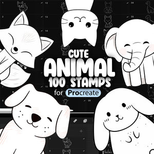 100 Procreate Cute Animal Stamps Brushes