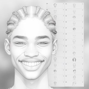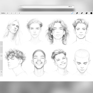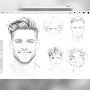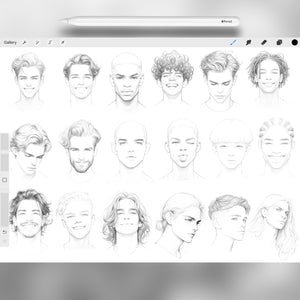This Procreate stamp set is the ultimate tool for anyone who wants to draw charming boys, design male characters, sketch fashion heads, or add expressive masculine faces to their digital art.