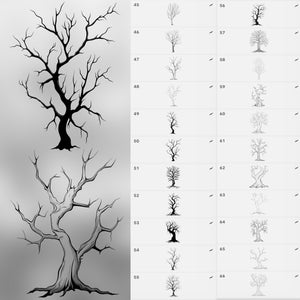 Stop wasting hours sketching bare trees from scratch — with 100 Dead Tree Stamp Brushes, you’ll always have a complete library of leafless trees ready to use.