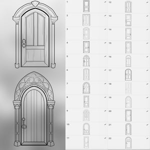 This stamp set is created for artists who want to draw doors, design building details, sketch backgrounds, or add structural elements to their art.