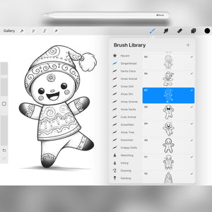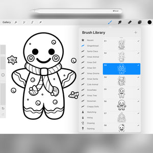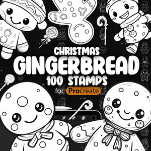 These Procreate gingerbread stamps are perfect for holiday baking art, kawaii food illustration and decorative patterns. With gingerbread cookie brushes and dessert stamp references, you can quickly create sweet scenes for Christmas cards, recipe blogs or digital products. Whether you’re drawing cute cookie characters, designing festive packaging or making cheerful backgrounds, these Procreate stamps will infuse your art with sugar and spice.