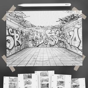This Procreate background set is the ultimate tool for anyone who wants to add urban art, street culture, and graffiti to their illustrations in seconds.