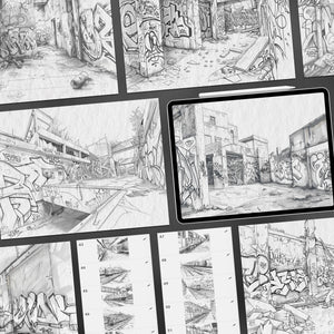 These graffiti wall backgrounds are perfect for street-inspired illustrations, urban storytelling, and grunge concept art. With ready-made murals and spray‑painted surfaces, you can instantly transport your audience to graffiti-covered alleys and underground tunnels. Whether you’re designing covers, drawing hip-hop scenes, or creating personal projects, these Procreate backgrounds bring authentic graffiti vibes to your work in seconds.