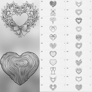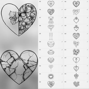 ✔️ Includes a variety of heart shapes and designs, from simple outlines to ornate and decorative styles.