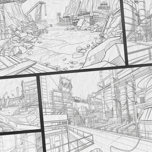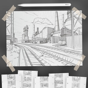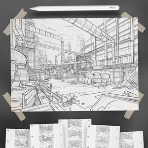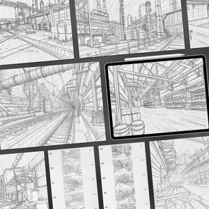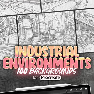 These industrial environment backgrounds are perfect for mechanical storytelling, cyberpunk art, and gritty concept design. With ready-made factories and power plants, you can instantly set the scene in a hard-edged, utilitarian world — from rusted warehouses to high-tech assembly lines. Whether you’re illustrating comics, designing album art, or exploring personal projects, these Procreate backgrounds add industrial realism to your work in seconds.
