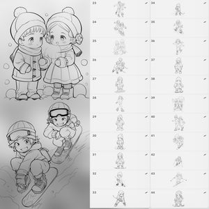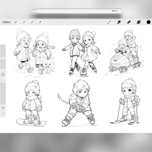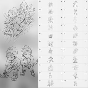 This stamp set is designed for artists who want to draw kids playing winter sports, design seasonal illustrations, sketch holiday characters, or add playful winter poses to their art.