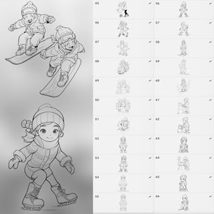 โ๏ธ Includes children skiing, skating, sledding, snowboarding, and more โ all in cute winter outfits