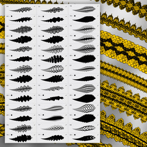 Donโt waste hours trying to draw tiny lace patterns by hand โ with 100 Lace Border Brushes, youโll always have delicate and ready-made lace effects at your fingertips.