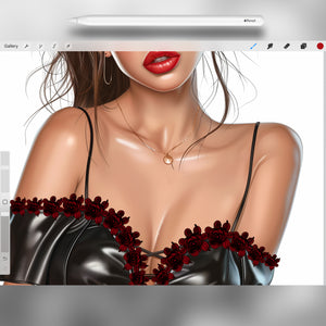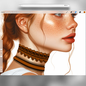 This Procreate brush set is the ultimate tool for anyone who wants to draw delicate lace trims, ornate borders, and decorative lace patterns without spending hours on repetitive details.
