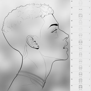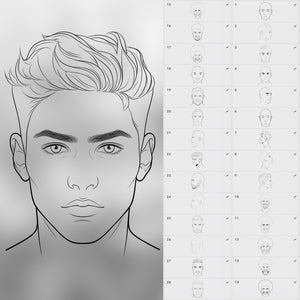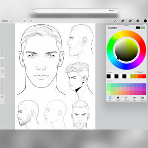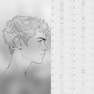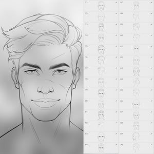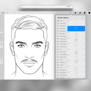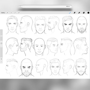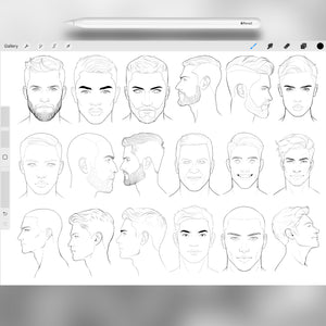 This Procreate stamp set is the ultimate tool for anyone who wants to practice portrait drawing, design characters, or quickly sketch male head references for their art.