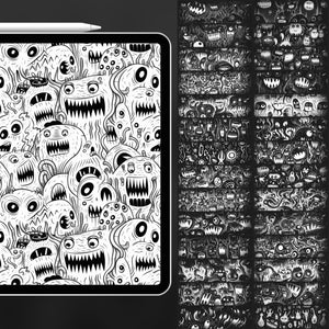✨ Ideal for any artist who wants to inject humor, horror, or fantasy into their Procreate artwork with repeatable monster patterns.