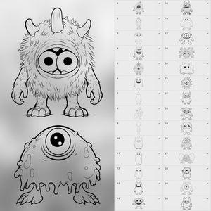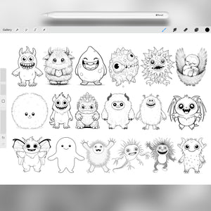 This stamp set is made for artists who want to draw adorable monsters, design creature characters, sketch fantasy beasts, or add playful monsters to their art.
