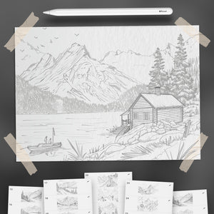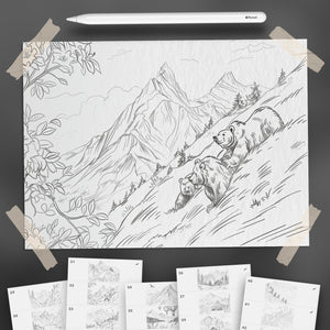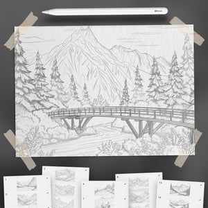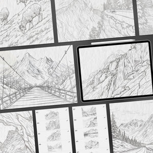 This Procreate background set is the ultimate tool for anyone who wants to paint majestic peaks, serene valleys, and rugged landscapes without hours spent plotting out every contour.
