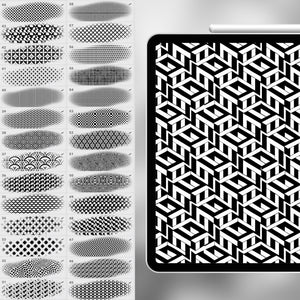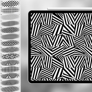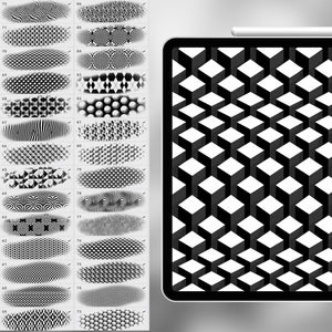 This Procreate pattern set is the ultimate tool for anyone who wants to add hypnotic geometry and retro op-art vibes to their digital art — with repeatable spirals, mazes, and mind-bending shapes that seamlessly tile across any canvas.