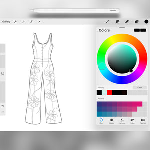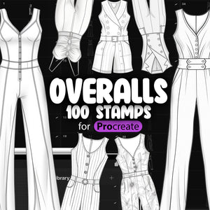 This Procreate stamp set is the ultimate tool for artists who want to design clothing concepts featuring overalls, jumpsuits, and rompers and create characters wearing casual or workwear.