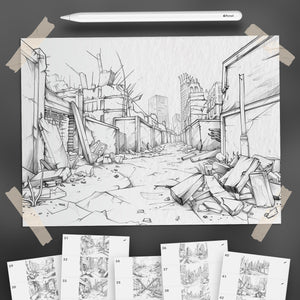 This Procreate background set is the ultimate tool for anyone who wants to depict ruined cities, desolate wastelands, and dystopian landscapes without meticulously designing every crumble and crack.