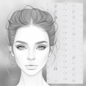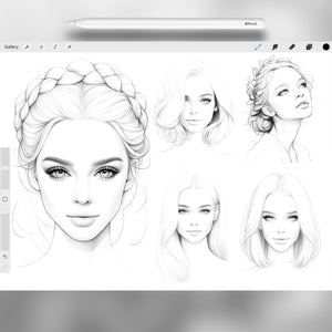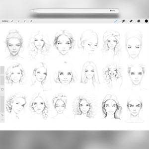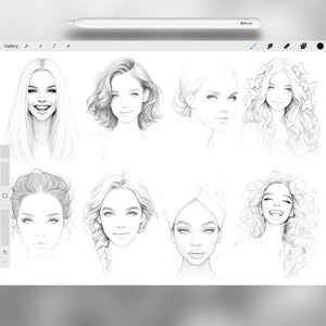 This Procreate stamp set is made for artists who want to draw beautiful girls, design glamorous characters, sketch fashion faces, or add feminine expressions to their art.