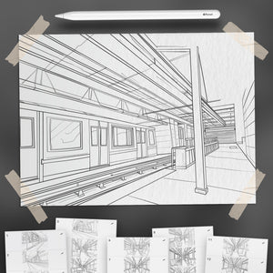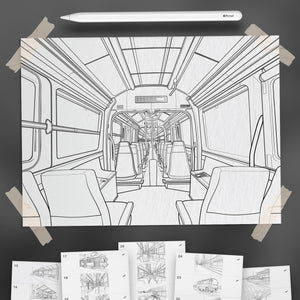 This Procreate background set is the ultimate tool for anyone who wants to draw buses, trains, subways, and trams without constructing every seat and railing.