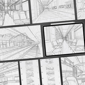 These public transport backgrounds are perfect for everyday storytelling, commuter scenes, and travel concept art. With ready-made train cars and bus interiors, you can instantly set your characters on the move — from bustling subway stations to quiet tram rides. Whether you’re illustrating slice-of-life manga, designing travel guides, or creating personal projects, these Procreate backgrounds bring authenticity and mobility to your work in seconds.