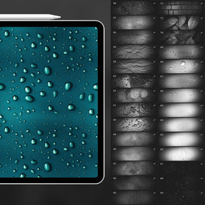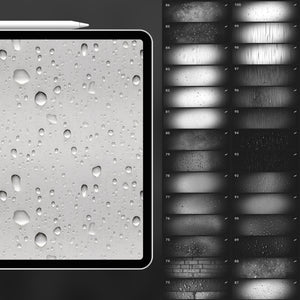 This Procreate texture set is the ultimate tool for anyone who wants to add raindrops, wet surfaces and rainy ambience to their digital illustrations.