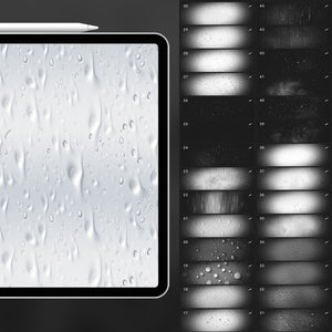 These Procreate rain brushes create a melancholic yet beautiful atmosphere in your digital art. Whether you’re showing a stormy romance, a moody urban scene or a refreshing shower, these textures bring your vision to life. Perfect for artists searching for Procreate rain texture brushes, raindrop patterns and weather effects.