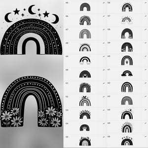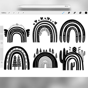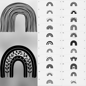 This set is the ultimate toolkit for artists who want to draw boho rainbows, design decorative patterns, sketch nursery art, or add whimsical rainbows to their digital creations.