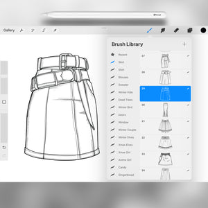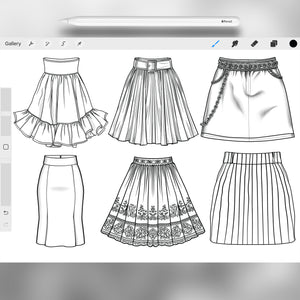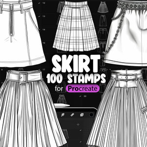 These Procreate skirt brushes are perfect for fashion illustration, outfit design, and character styling. With ready-made skirt stamp brushes, you can effortlessly add skirts to your characters, combine with other Procreate clothes stamps, or compose complete looks using Procreate dress accessories. Whether you're working on fashion portfolios, digital wardrobe mockups, comics, or social media visuals, these brushes let you design faster, stylize with variety, and keep your illustrations fashionable.