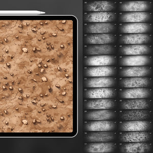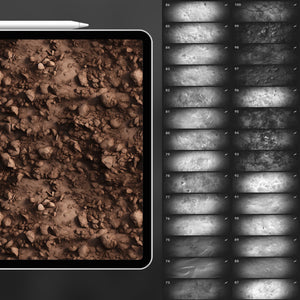 This Procreate texture set is the ultimate tool for anyone who wants to add dirt, earth and natural ground surfaces to their digital illustrations.
