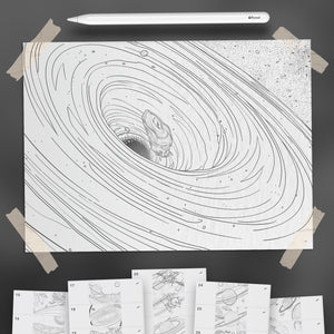 This Procreate background set is the ultimate tool for anyone who wants to explore galaxies, nebulas, and cosmic vistas without rendering each star and swirl from scratch.