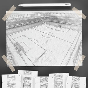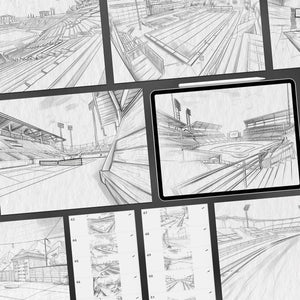 This Procreate background set is the ultimate tool for anyone who wants to illustrate stadiums, courts, and fields without drawing every seat and scoreboard.