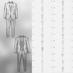 This Procreate stamp set is the ultimate tool for anyone who wants to sketch wedding outfits, design tuxedos, or add elegant groom clothing to their fashion croquis and illustrations.