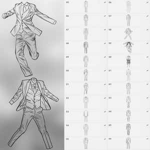 These Procreate tuxedo and groom suit brushes are perfect for wedding fashion design, formal wear sketching, and clothing illustration. With Procreate groom suit stamps, tuxedo brushes, and wedding outfit templates, you can easily create elegant croquis, experiment with styles, and speed up your fashion sketching workflow. Whether youβre working on bridal collections, character design, or personal projects, these Procreate brushes will help bring your ideas to life.