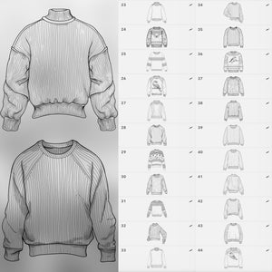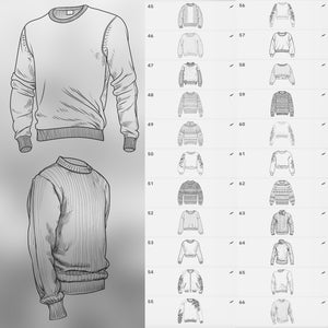 Don’t waste time sketching every clothing detail from scratch — with 100 Sweater Stamps, you’ll always have ready-to-use outfit elements at your fingertips.