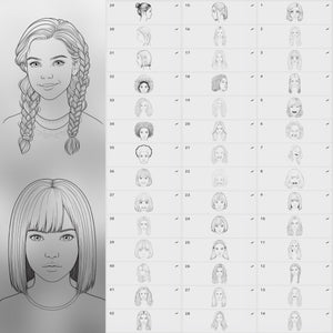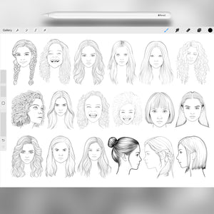 This Procreate stamp set is the ultimate tool for anyone who wants to practice portrait drawing, design characters, or quickly sketch girls head references for their art.